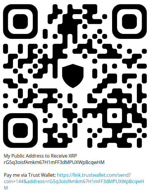 Pay me via Trust Wallet: https://link.trustwallet.com/send?coin=144&address=rG5q3oisfAmkm67H1mFF3dMPUXWpBcqwHM